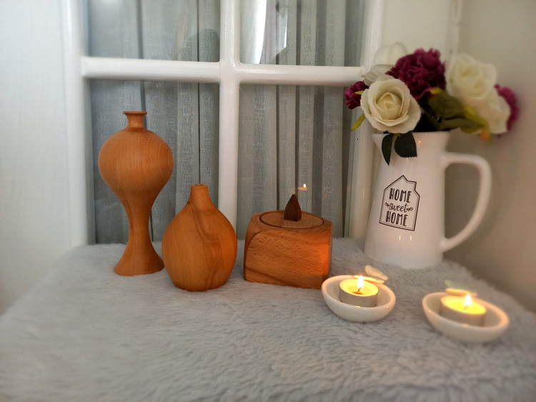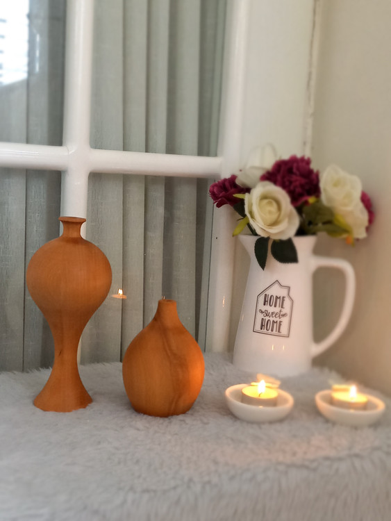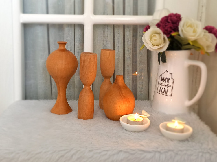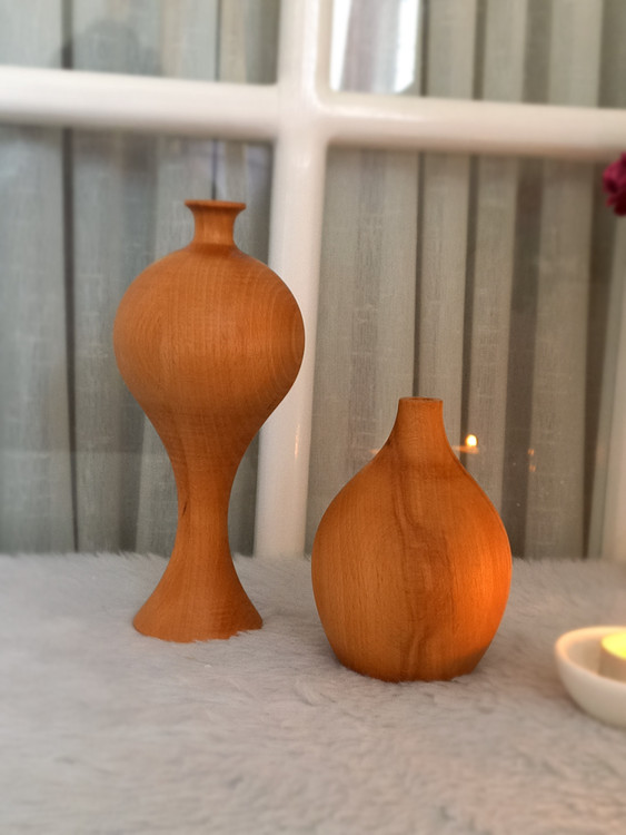 گلدان چوبی دکوراتیو دو تکه ساخته شده از چوب سوپر راش اکراینی ارتفاع گلدان بزرگ ۲۰ سانت قطر ۸ سانت و ارتفاع گلدان کوچک ۱۲ سانت و قطر ۸ سانت