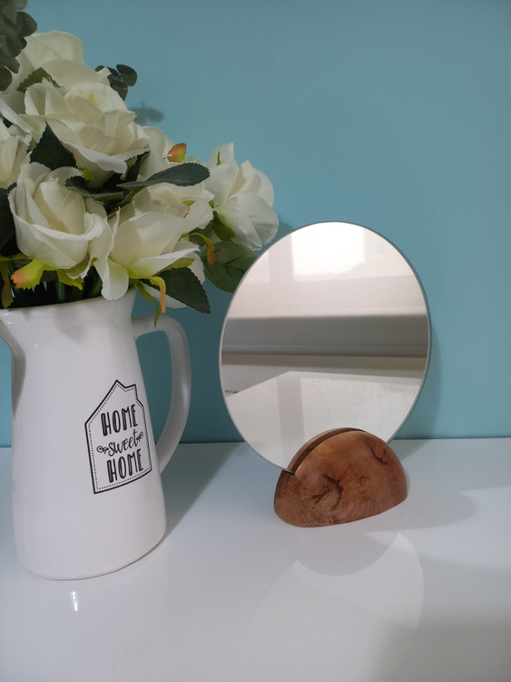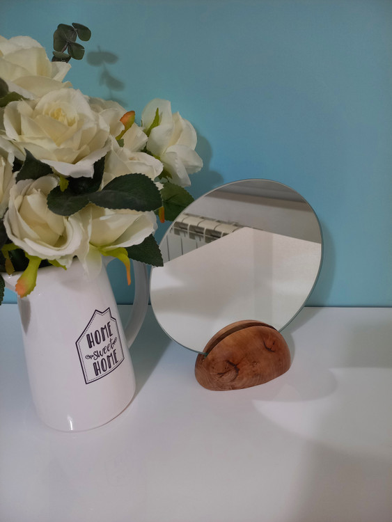 قطر آینه ۲۲سانتی متر و جنس پایه چوب راش و گردو و زربین۱۲ در ۷ سانت و شمعدان بصورت جداگانه قابل سفارش هست .و چنانچه فقط متقاضی خرید پایه چوبی هستید با شماره ۰۹۱۱۱۸۴۸۷۳۶ تماس بگیرید.