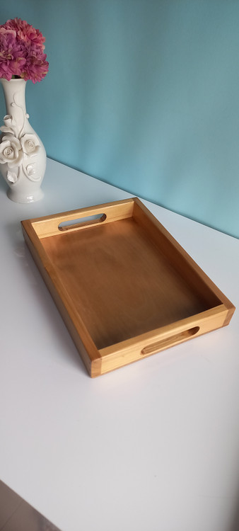 سینی دسته دار چوبی چوب روس مدل دسته صاف