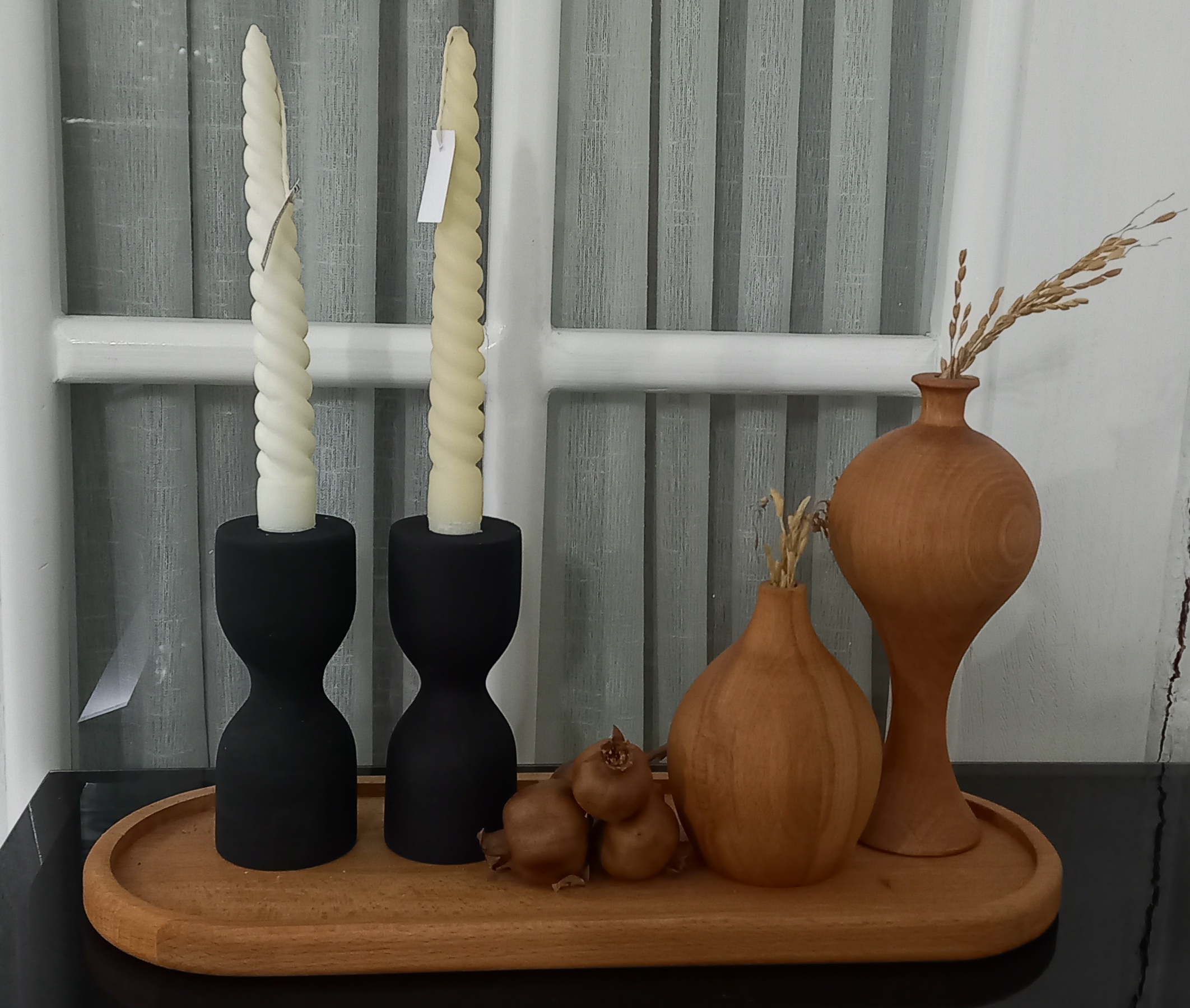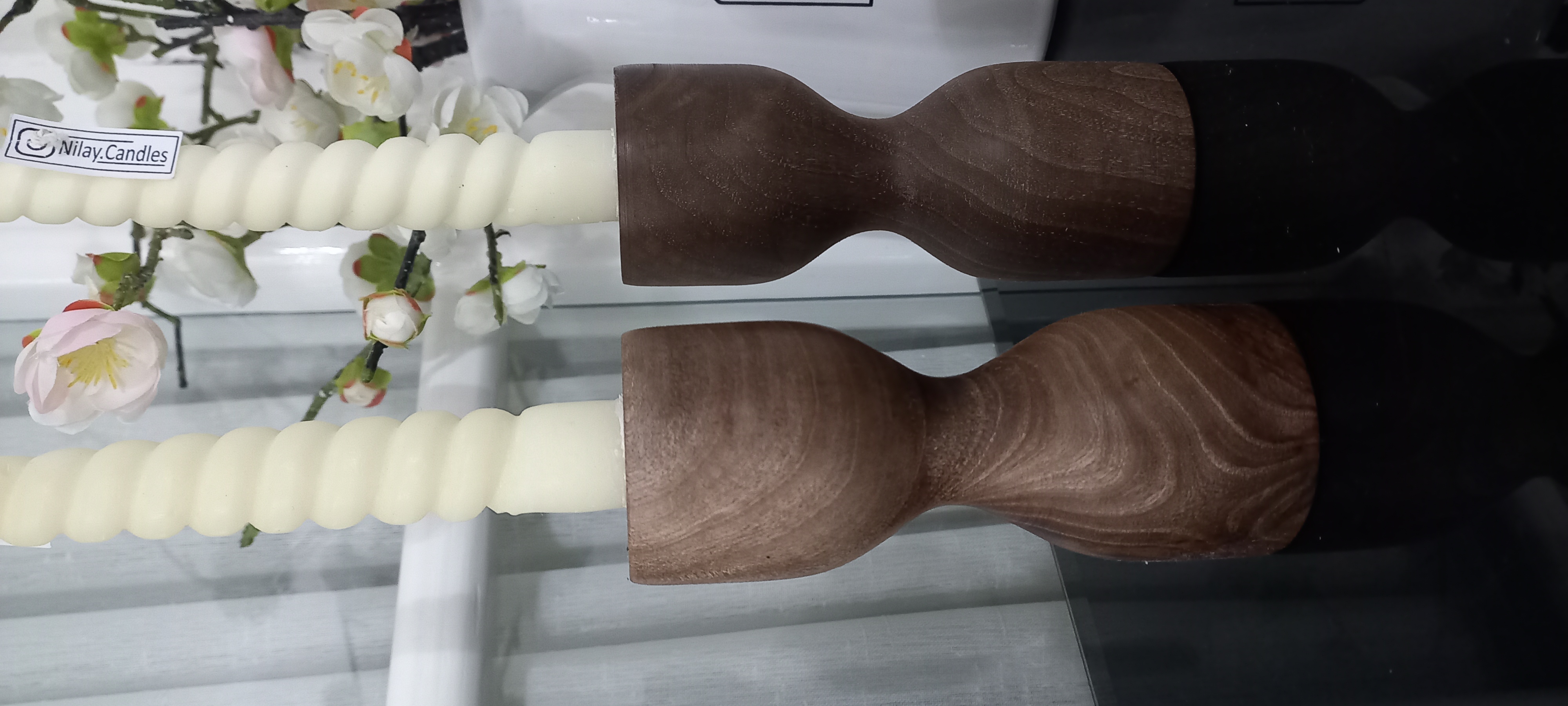 ارتفاع ۱۳ قطر ۴.۵ سانت شمعدان چوبی مدل ساعت شنی ساخته شده از چوب گردو
