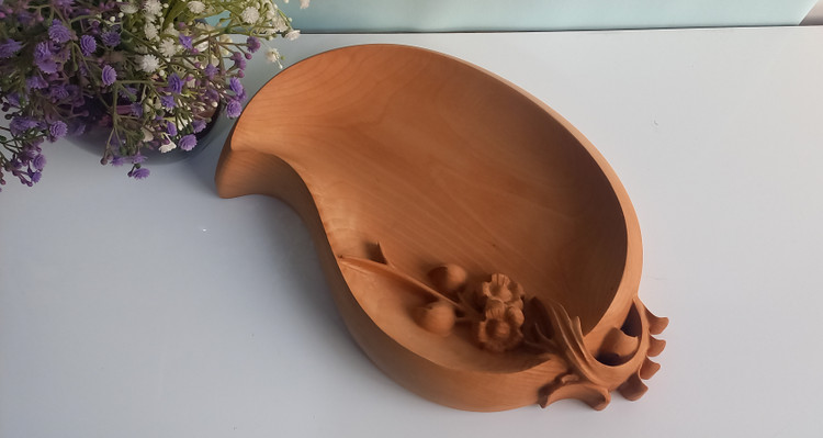 ظرف سرو پذیرایی چوبی منبت کاری گلوبرگ طرح ترمه چوب راش