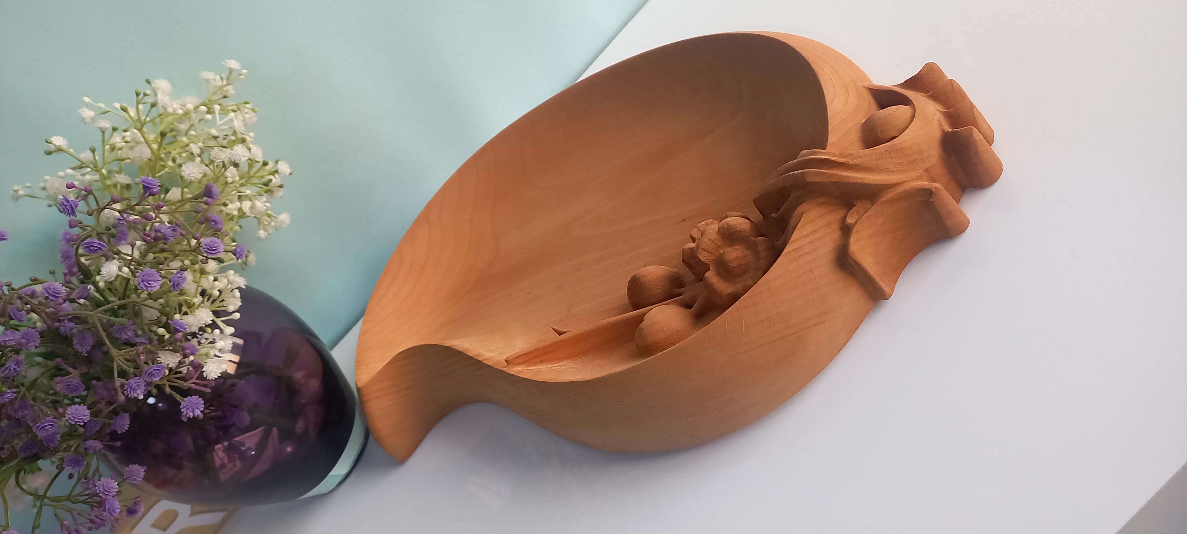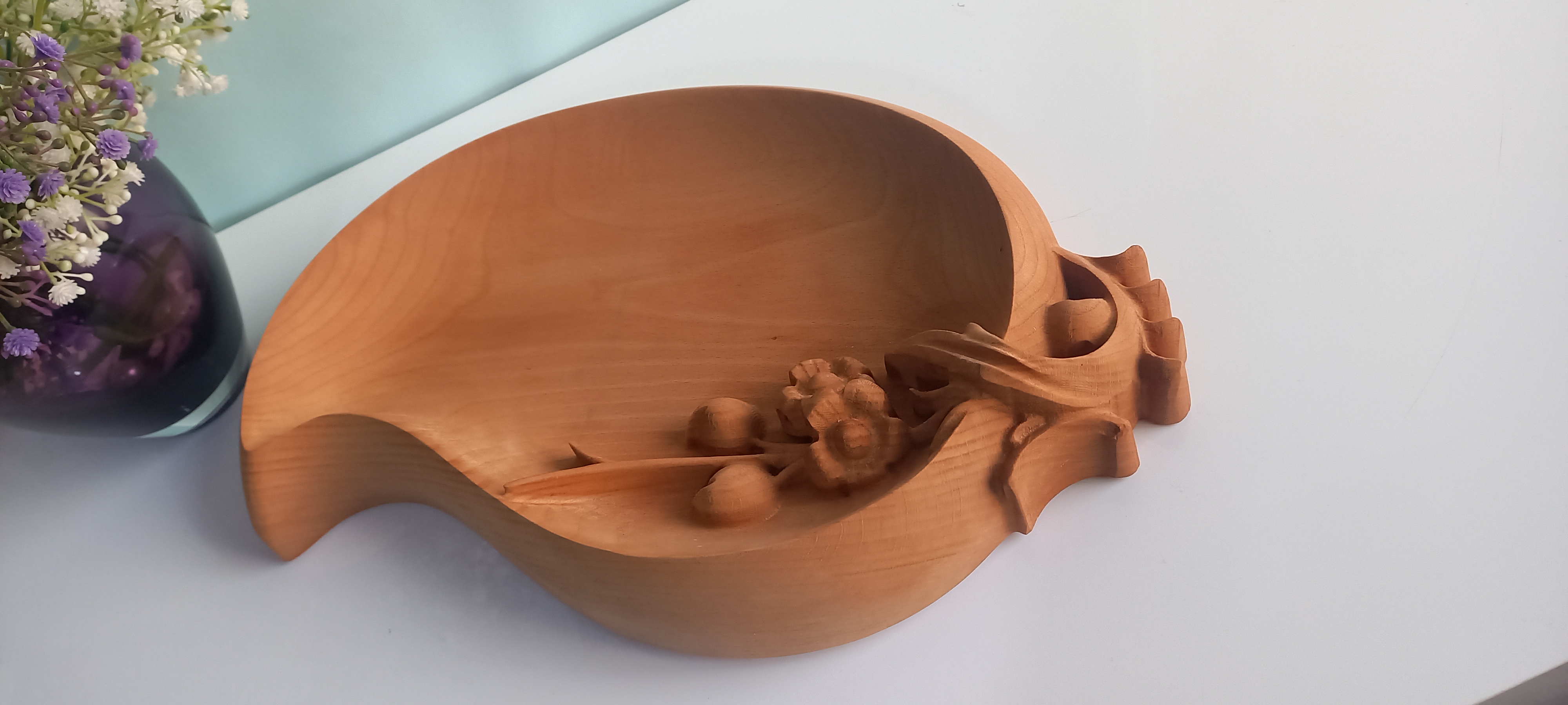 ظرف سرو پذیرایی چوبی منبت کاری گلوبرگ طرح ترمه چوب راش