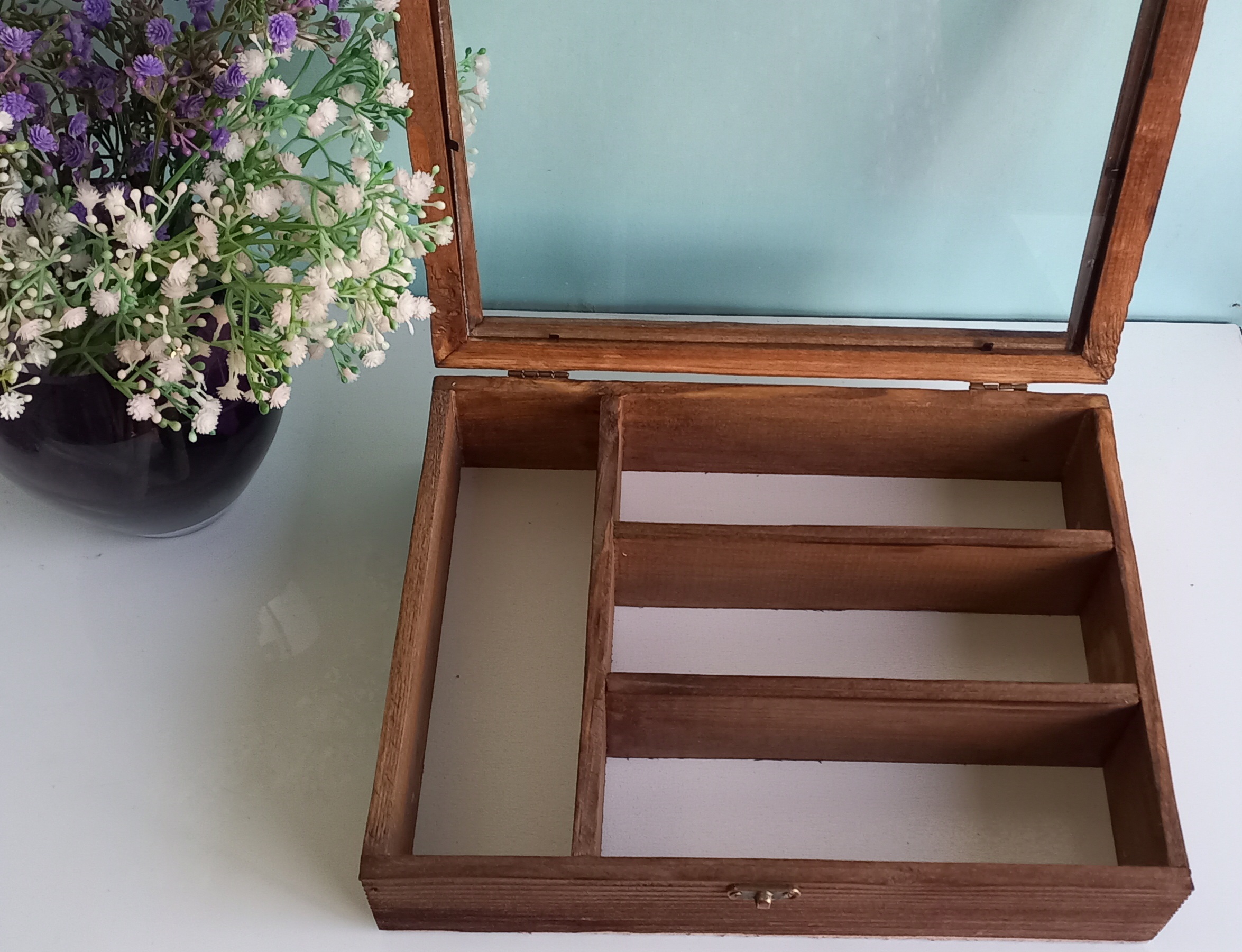 جاقاشق چنگال ۴ خانه درب دار و قفل دار چوبی