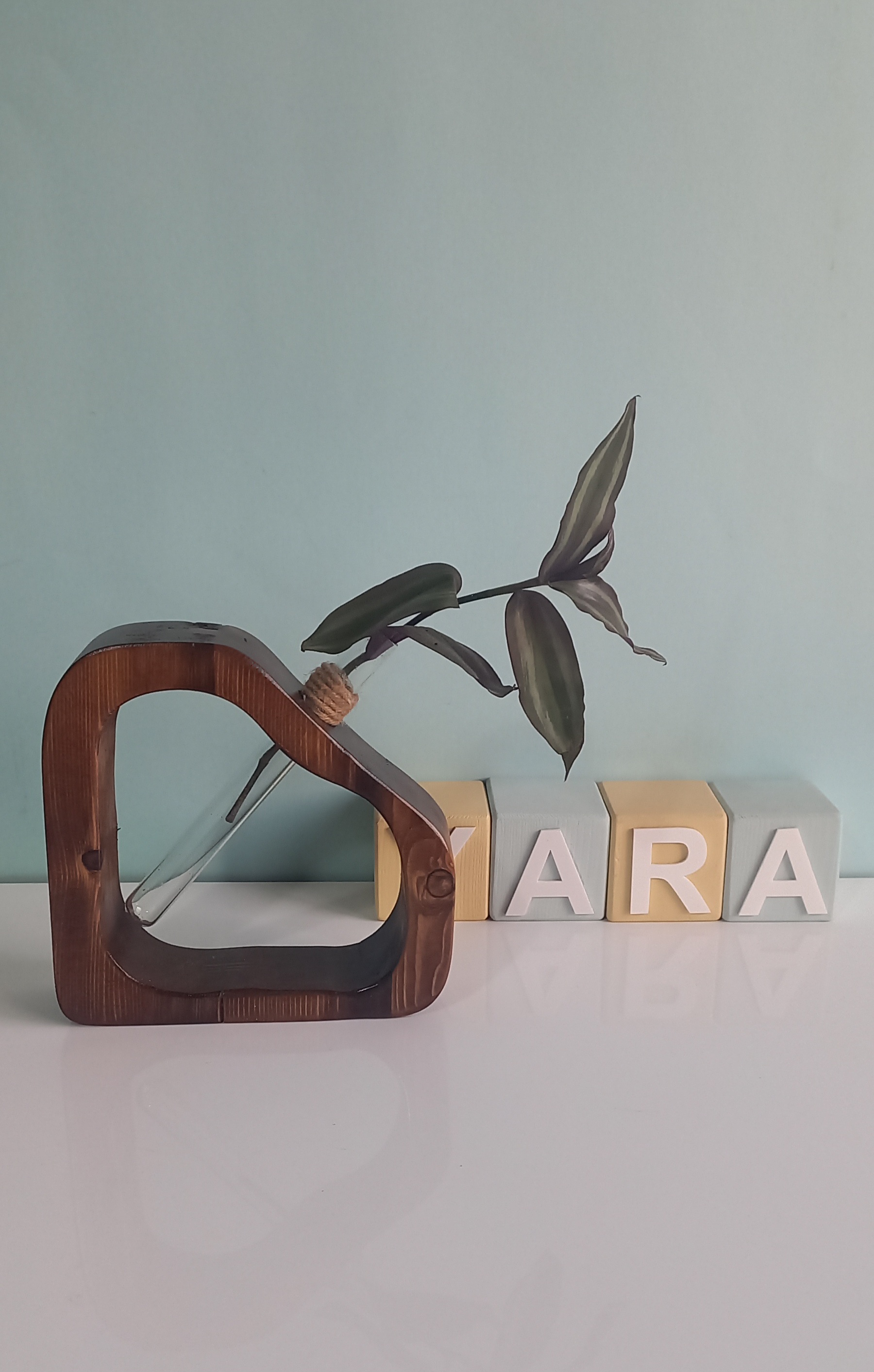 گلدان چوبی و شیشه ای قلمه زنی گیاه کدgc16