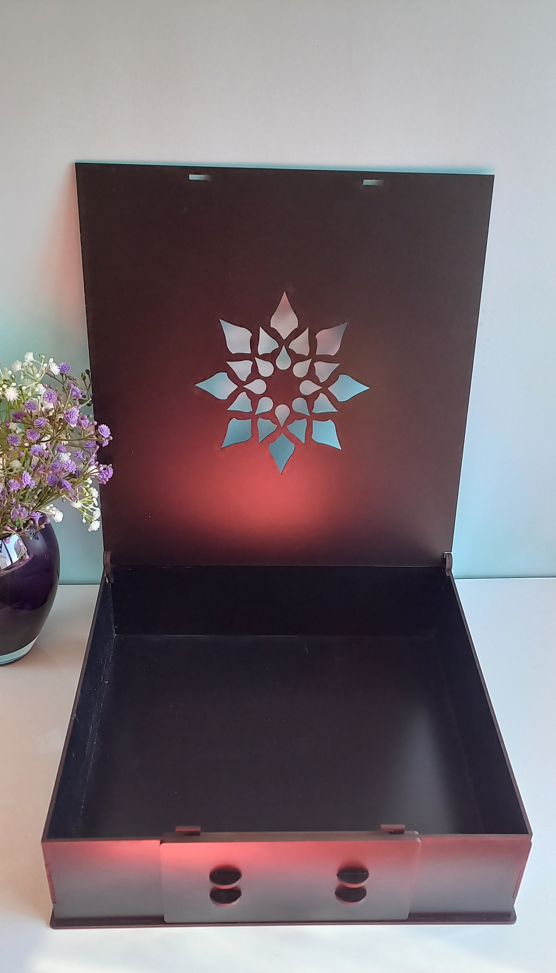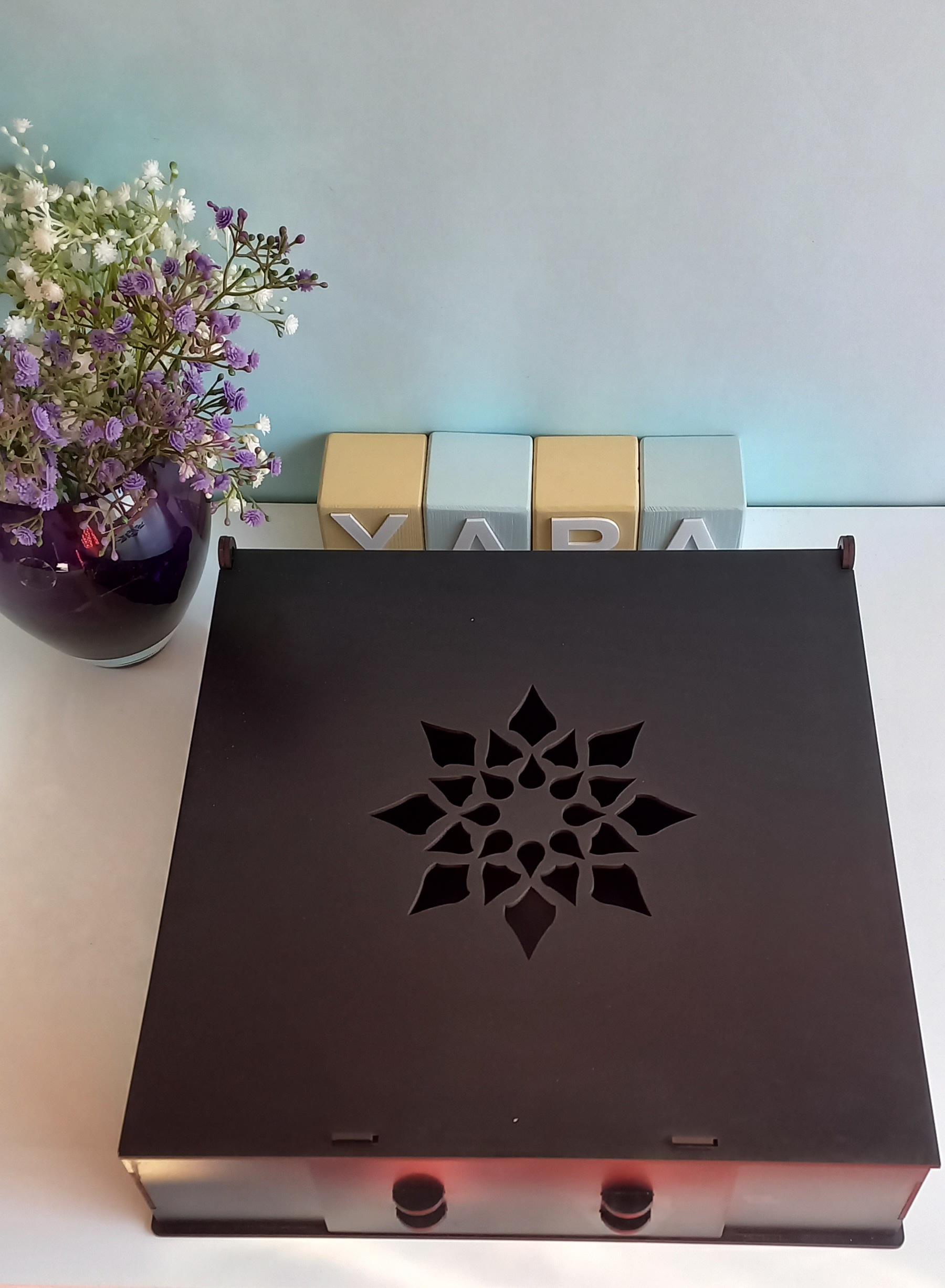 جعبه قفلدار ساخته شده از اچ دی اف در ابعاد ۳۰ در ۳۰ سانتیمتر و ارتفاع ۹ سانت