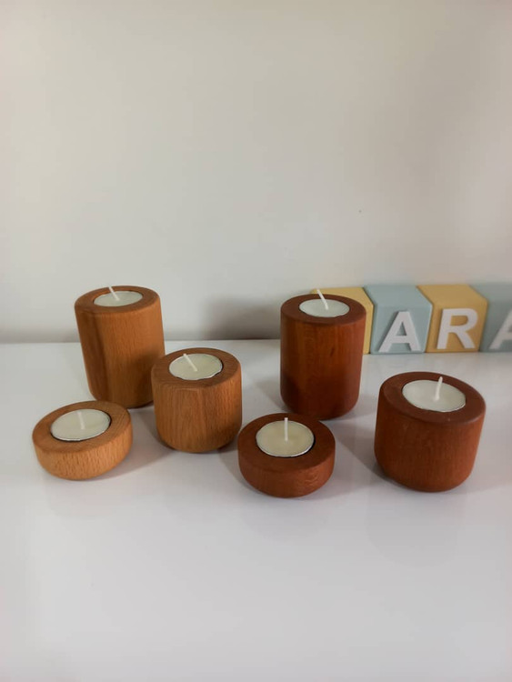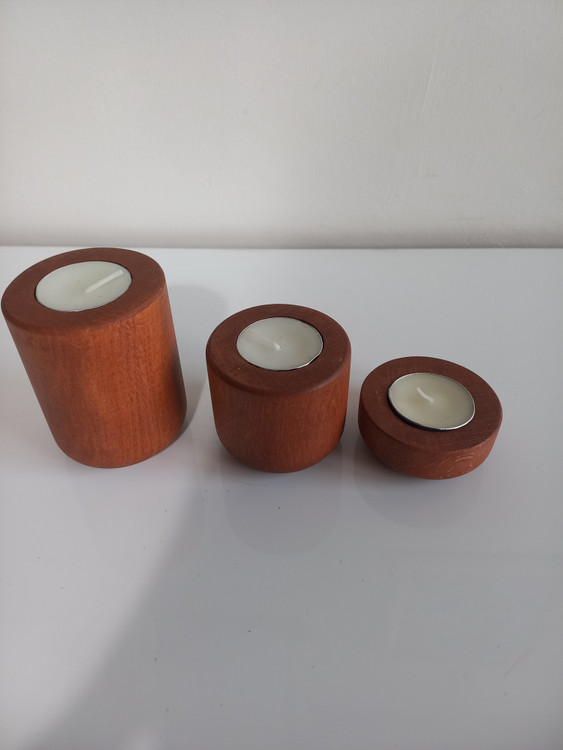 شمعدان ۳ تایی چوبی مدل استوانه داخل کار شمع وارمر یا شمع قطر ۴ سانت استفاده می شود.و از چوب سوپر راش اکراینی و پوشش گیاهی ساخته شده و ابعاد کار قطر۶.۵ سانت و ارتفاع ۹ و ۶ و ۳ سانتیمتر.