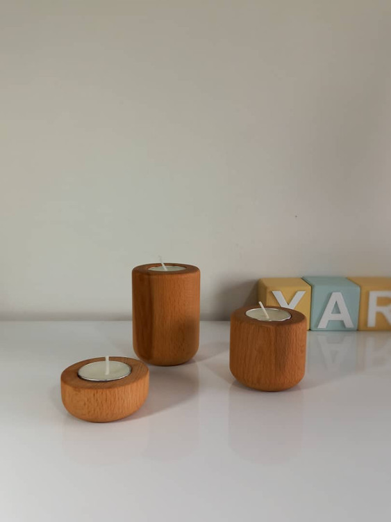 شمعدان چوبی سه تایی مدل استوانه ای چوب راش کد hm۰۴۲