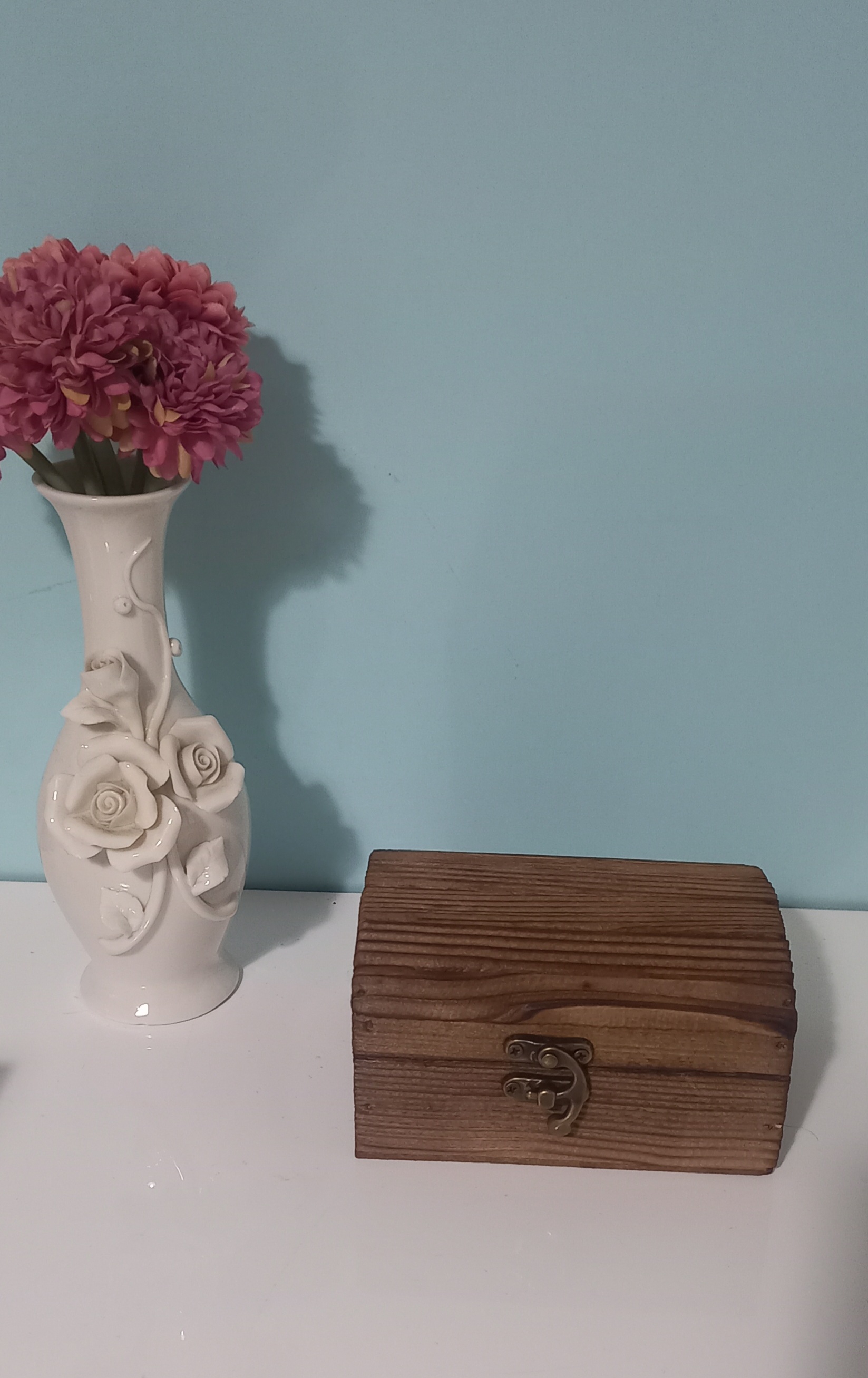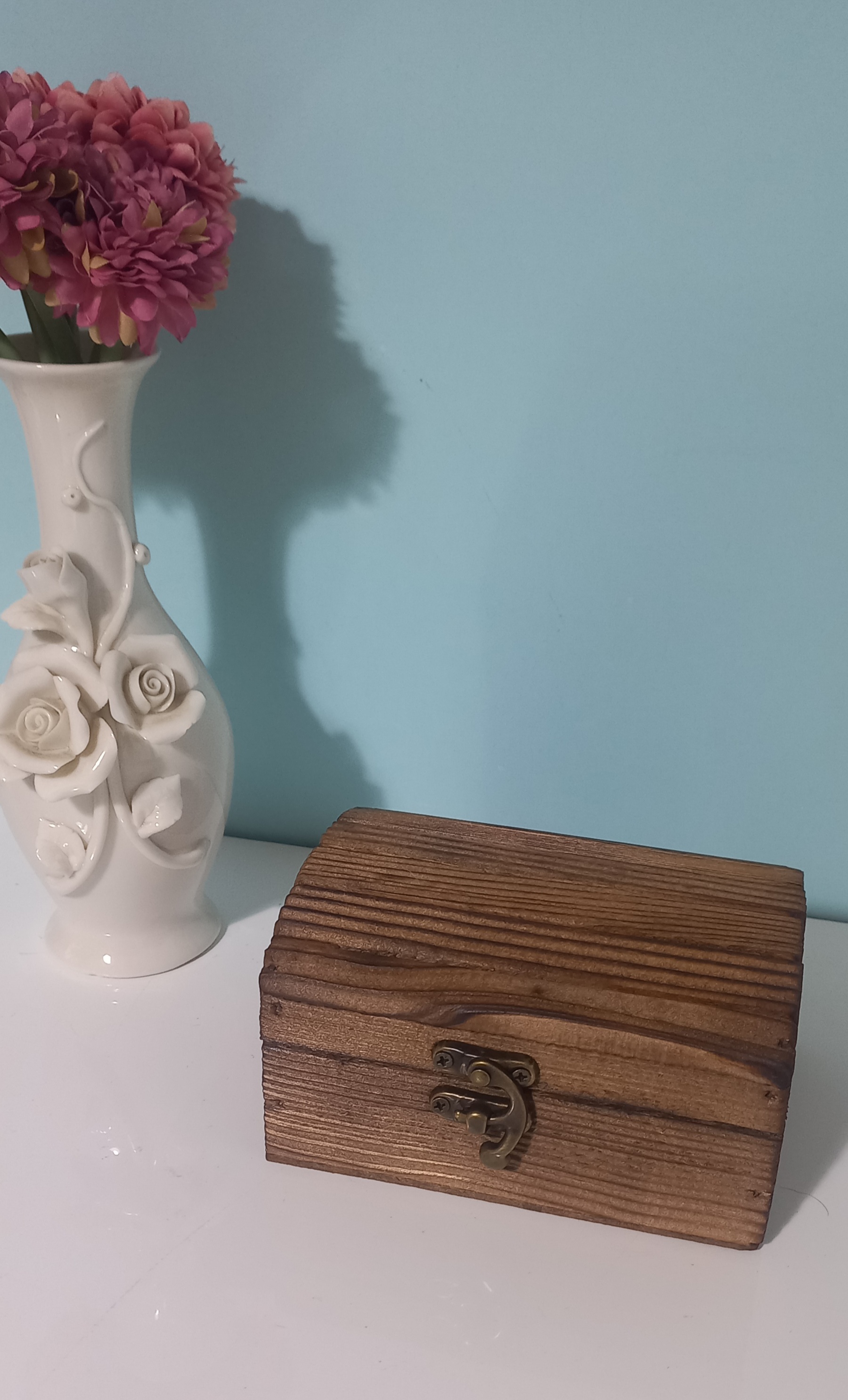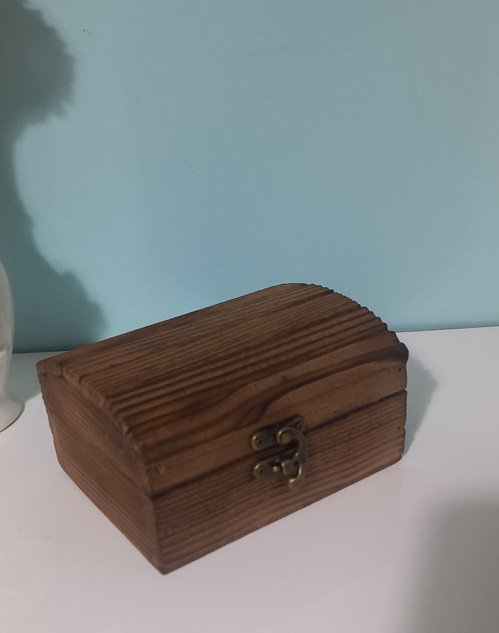 صندوقچه قفلدار کوچک ساخته شده از چوب روس برنگ روشن موجود در عکس در ابعاد ۱۳ در ۹.۵ و ارتفاع ۷ سانت می باشد.